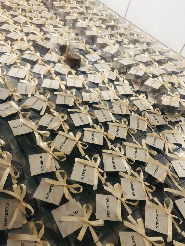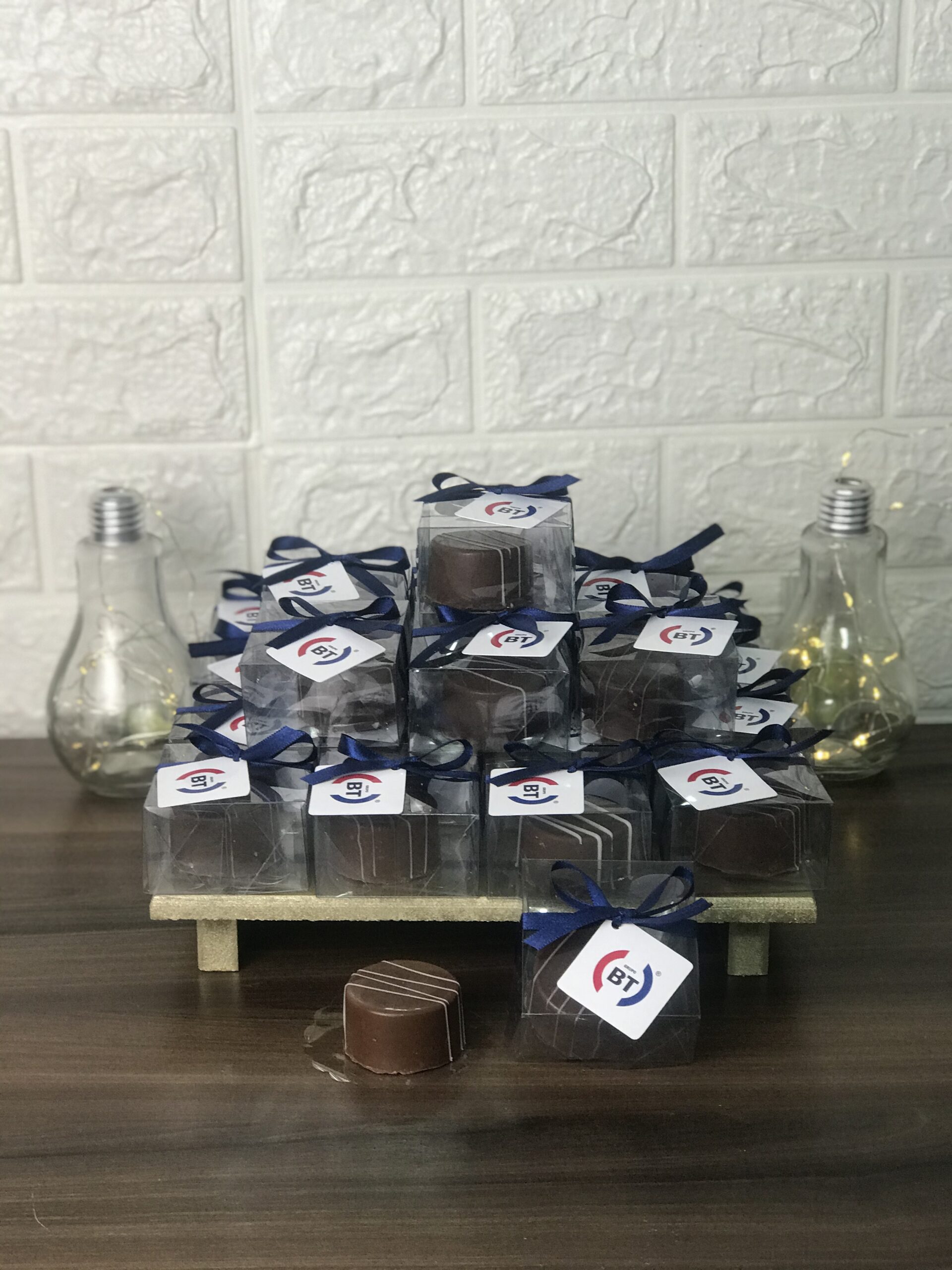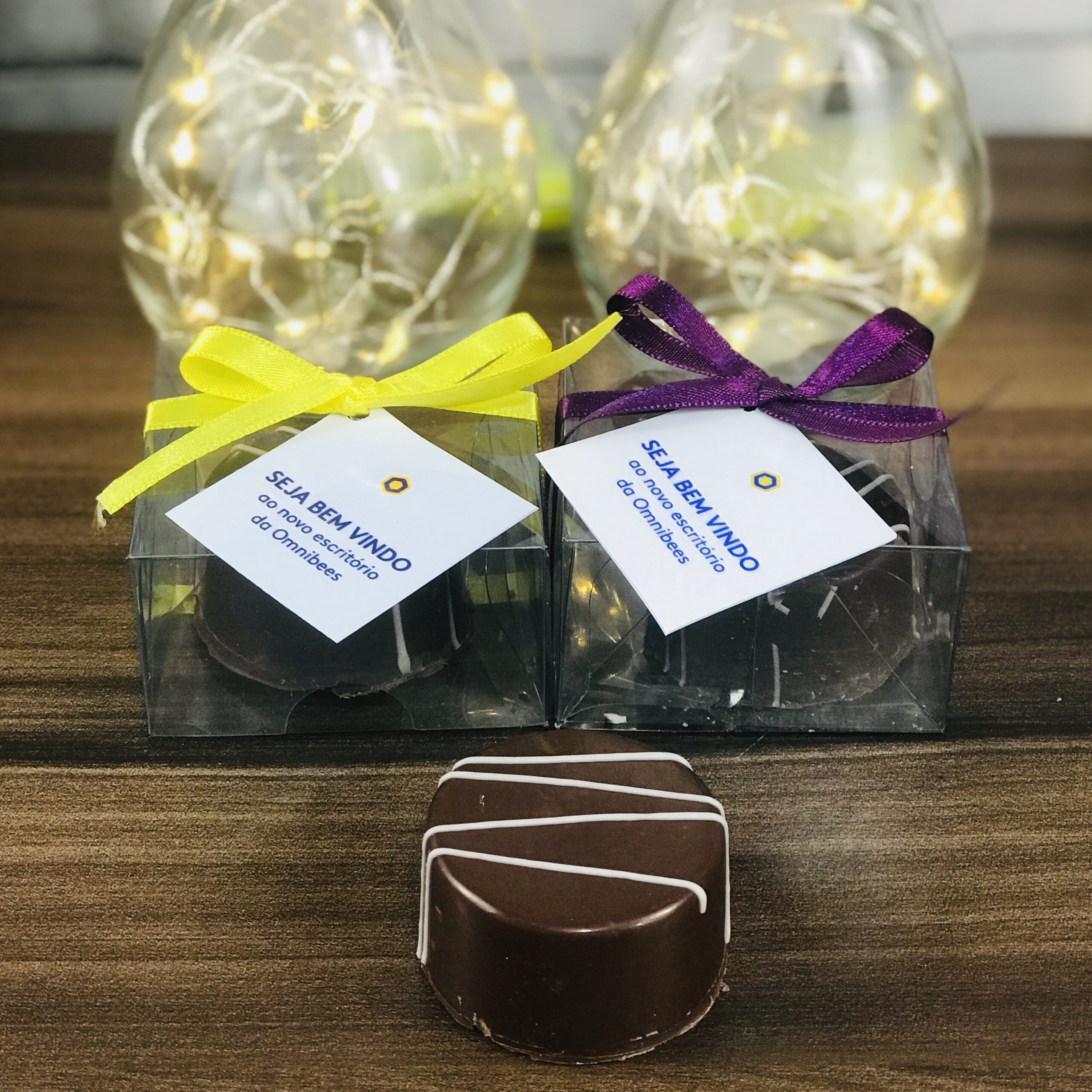 Embalagem personalizada com laço e tag. Cada unidade carrega carinho e sofisticação.