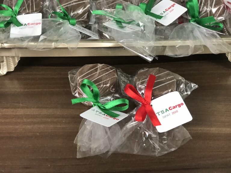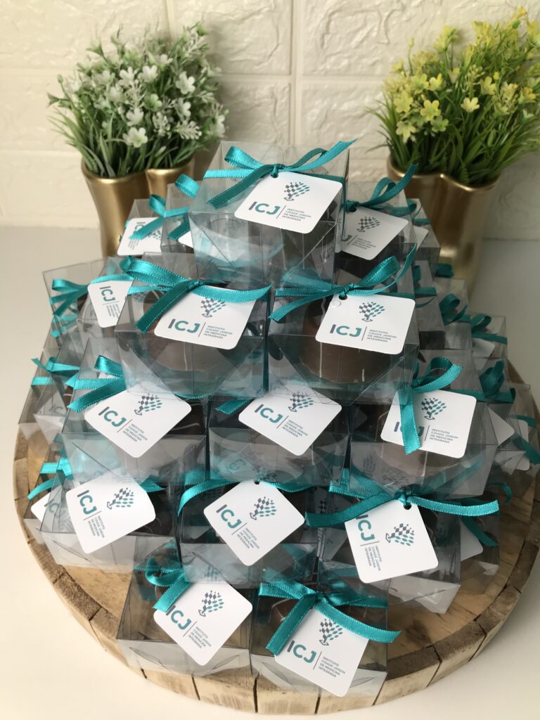 Pães de mel recheados e embalados para eventos ou brindes corporativos.
